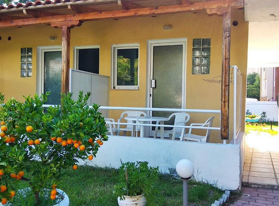 Вила Таниа, се наоѓа во Ханиоти, на неполни 100м оддалеченост од плажа. Вилата располага со трокреветни и четворокреветни студиа, сите лоцирани на приземје, со сопствена тераса со поглед кон двор со зеленило. Во самиот двор има тоалети и простор за чекање за прием на гости и при заминување на гостите.